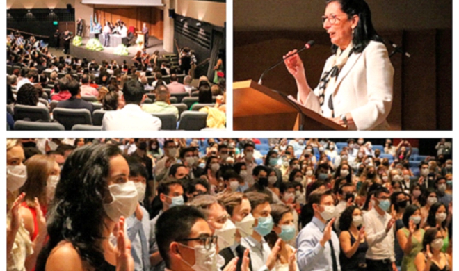 Em sessão solene da Congregação da Faculdade de Medicina da Universidade de São Paulo, realizada no Grande Auditório do Centro de Convenções Rebouças, na segunda-feira (21 de novembro), 170 alunos e alunas da 105ª turma da FMUSP receberam o grau de médicos e médicas.