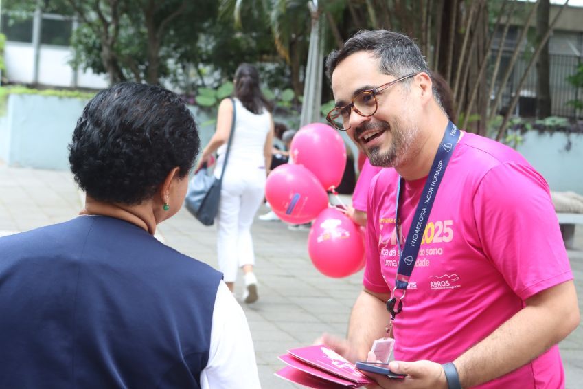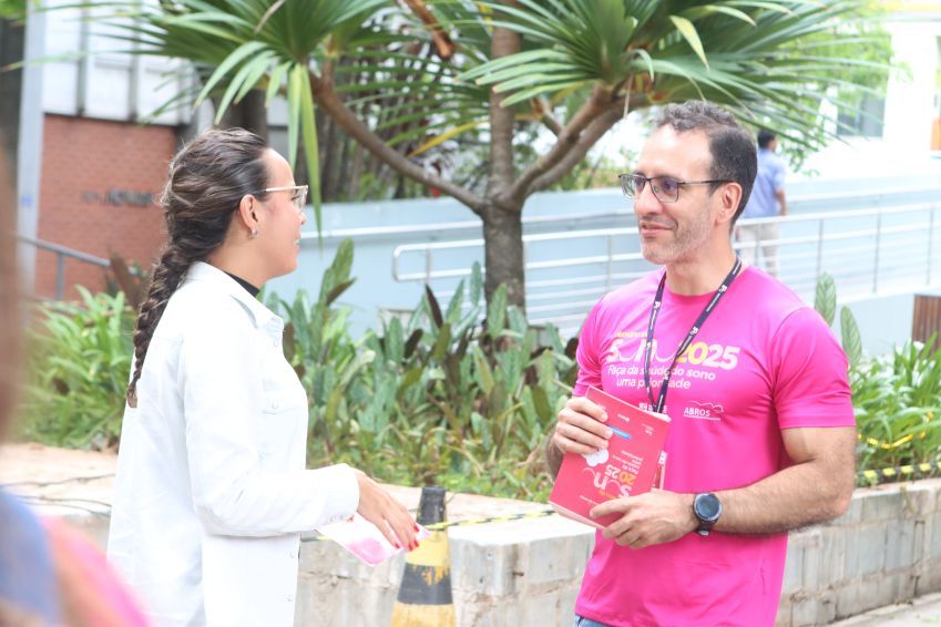 A Academia Brasileira de Sono (ABS) promoveu uma ação na Praça Adib Jatene, terça-feira (18/3). Faça da saúde do sono uma prioridade foi o tema escolhido para a edição do evento este ano. Na ocasião, colaboradores e pacientes receberam panfletos psicoeducativos e puderam se informar e tirar dúvidas sobre os distúrbios do sono.