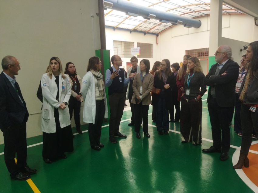 O Prof. Dr. Edivaldo Utiyama estava acompanhado de membros da Diretoria Clínica do HCFMUSP. Os visitantes conheceram o programa de reabilitação ambulatorial, voltado às síndromes neurológicas paralíticas e outras condições que demandam acompanhamento especializado.