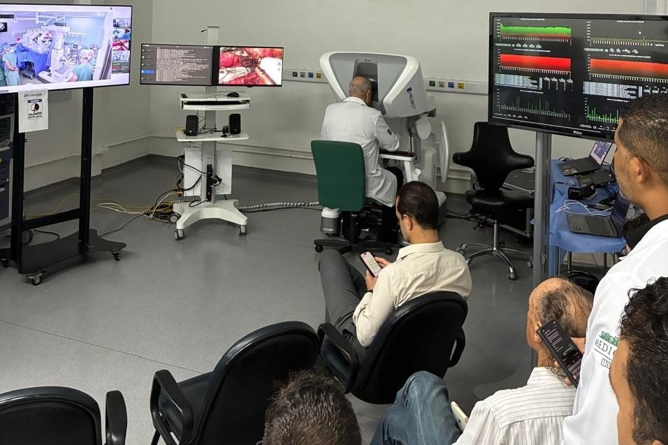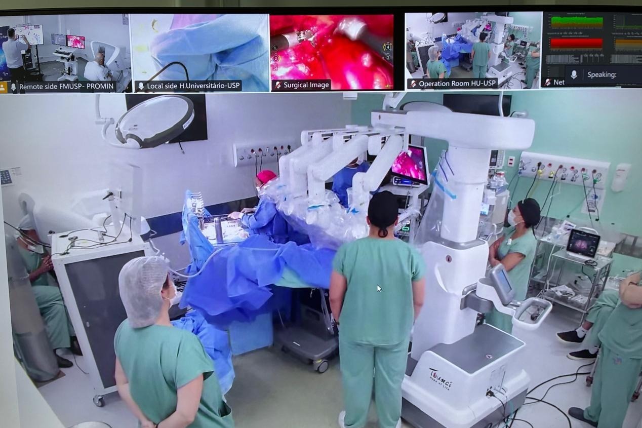 Desenvolvido em parceria com o Hospital Universitário da USP (HU-USP), o projeto conectou, em tempo real, o console instalado no Centro de Treinamento em Procedimentos Minimamente Invasivos (PROMIN), sediado e operado por cirurgiões na FMUSP, aos braços robóticos posicionados no centro cirúrgico do HU, a cerca de 15 quilômetros de distância.