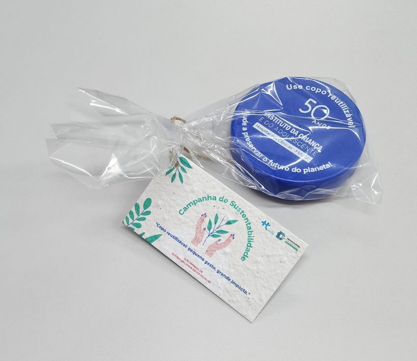 Os copos foram entregues em uma embalagem especial, acompanhados de uma tag de papel ecológico com sementes de manjericão. A ação reforça o compromisso do Instituto com práticas sustentáveis e convida os colaboradores a participarem ativamente da campanha por meio da hashtag #PlantandoComOICr.