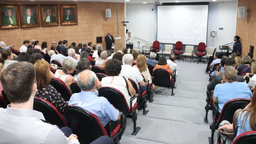 Após uma recepção realizada no hall do 1º andar, teve início uma cerimônia com discurso proferido pelo Titular e Presidente do Departamento de Pediatria, Prof. Clovis Artur de Almeida Silva.