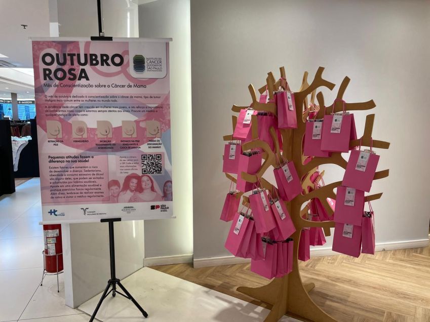 Na ocasião, a equipe multiprofissional do Icesp esteve à disposição do público com materiais explicativos e a Mamamiga (um modelo didático que simula a glândula mamária feminina com possíveis alterações nos seios e nas axilas) para fornecer informações e orientações importantes sobre o câncer de mama. Além disso, houve a dinâmica “Semeando o Rosa”, em que as pessoas puderam montar uma sacola de presente e escrever mensagens positivas e de esperança. As sacolinhas foram colocadas na “árvore dos desejos”, instalada no local, e depois entregues aos pacientes do Instituto.